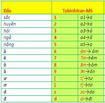 gõ dấu Tubinhtran-MS sau đây: