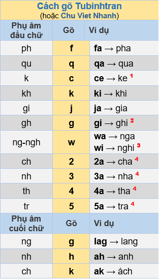 bằng một phím. - VÀ đồng thời, gõ chữ cái cuối bằng chữ cái khác. Cụ thể, các qui ước được